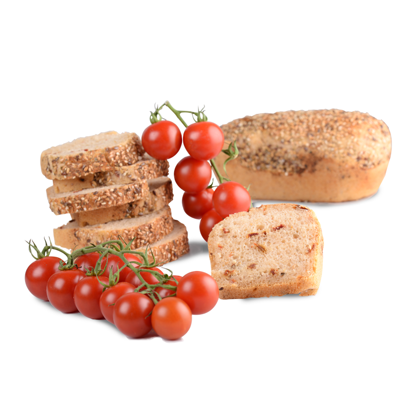 Mieszanka piekarska do produkcji chleba pszennego z suszonymi pomidorami (8,7 %), płatkami ziemniaczanymi i bazylią.