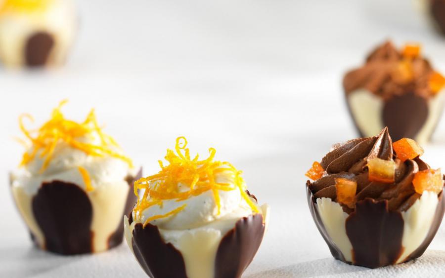 Kubeczki Irys to hołd złożony jednemu z najpiękniejszych kwiatów na ziemi. Dzięki pięknie wyrzeźbionym płatkom w kontrastującej ze sobą ciemnej i białej czekoladzie Callebaut® kubeczki Irys będą zwracać na siebie uwagę na talerzu deserowym. Nie ma dwóch identycznych sztuk kubeczków Irys – każdy kwiat subtelnie różni się od innych, jeszcze bardziej podkreślając rękodzielniczy charakter tych pięknych ozdób. Zaokrąglony kształt i szerokie otwarcie kwiatów Iris Cups pozwala w łatwy sposób je napełniać i dekorować. Wystarczy wypełnić je według uznania musem czekoladowym, kremem, lodami, owocami itp.
