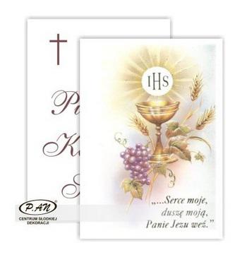 Gotowe strony opłatkowe do tortu komunijnego OTWARTA KSIĘGA w wersji PREMIUM wykonane z grubego opłatka.